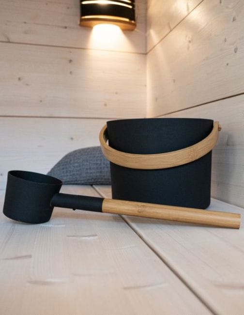 Apie Kubiliuko ir samčio komplektas Harvia Black