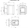 Stilinga ir griežto dizaino krosnelė Panorama apjungia grožį, stilių ir funkcionalumą. Išorinėje krosnelės pakuroje yra sumontuotas židinio durelių vaidmenį atliekantis didelis stiklas, kuris klientams suteiks malonumą matyti gyvą ugnį. O linijų elegancijos ir kombinuoto korpuso dizaino dėka krosnelė Panorama taps ne tik nuostabiu garo ir šilumos šaltiniu, bet ir vertinga bet kurios pirties puošmena.Viršutinės krosnies plokštės storis yra 8 mm, o tai užtikrina ilgaamžiškumą naudojant rūgščioje aplinkoje ir aukštoje temperatūroje. Dvigubas S formos dūmų kanalas užtikrina greitą ir efektyvų krosnelės darbą su minimaliu malkų kiekiu.Krosnelės durelės yra su karščiui atspariu stiklu „SCHOTT ROBAX”, kurio dydis 310×310 mm.Panorama 26GamintojasNovaslav, UkrainaPirtis nuo (m3)15Pirtis iki (m3)26Intensyviai naud. nuo (m3)15Intensyviai naud. iki (m3)24Akmenų konteinerio talpa (kg)iki 60Pakuros durelėsStiklinės didelės, 31cm x 31cmKrosnelės apdaila iš viršausDažyta juoda spalvaKrosnelės apdaila iš priekioDažyta juoda spalvaKrosnelės apdaila iš šonųDažyta juoda spalvaPlotis (mm)445Gylis (mm)831Aukštis (mm)786Svoris be akmenų (kg)105Dūmtraukio diametras (mm)120