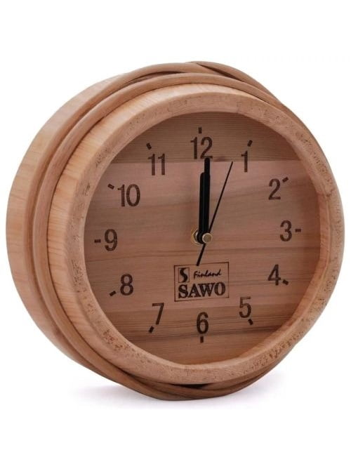 Priepirčio laikrodis kubiliuko dugnas, pagamintas iš Kanados kedro medienos. Gamintojas Sawo, Suomija