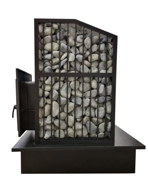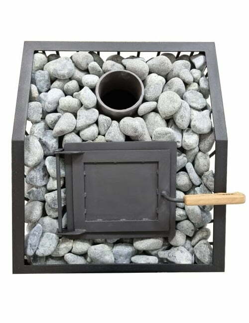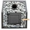 Šilumą išlaikantys akmenys tinkle – serpentinitas. Rekomenduojama akmenų frakcija 5-10cm.