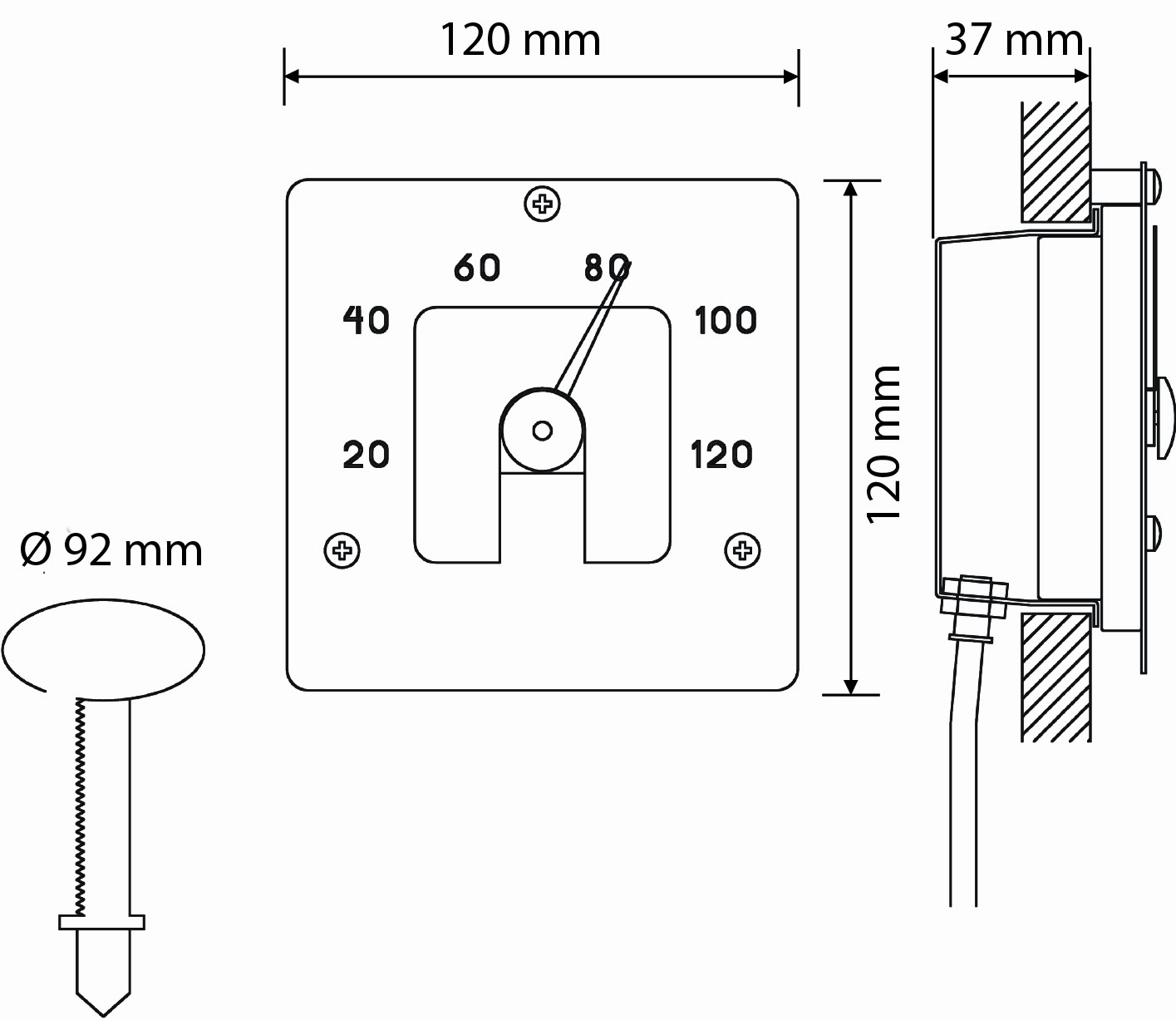 Cariitti termometras SQ su pašvietimu gali būti pajungtas prie 2-6 mm šviesolaidžio. pagamintas iš matinio stiklo ir nerūdijančio plieno dažytas balta spalva. Matmenys 120 x 120mm, į sieną įsileidžia 40 mm, virš sienos – 20 mm. Prie sienos tvirtinasi trim nerūdijančio plieno varžtais esančiais komplekte.Gamintojas: Cariitti OY, Suomija