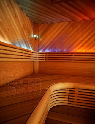 Komplektas lengvai montuojamas net įrengtoje pirtyje.